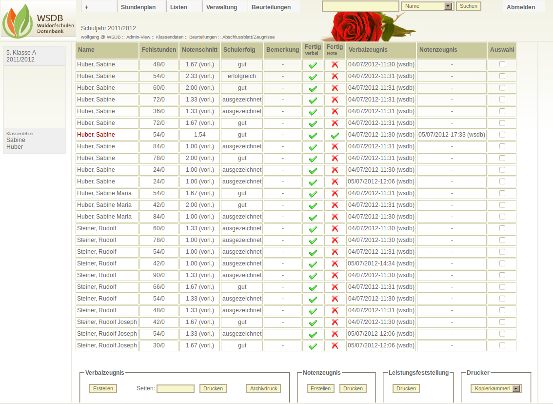 WSDB Zeugnisübersicht